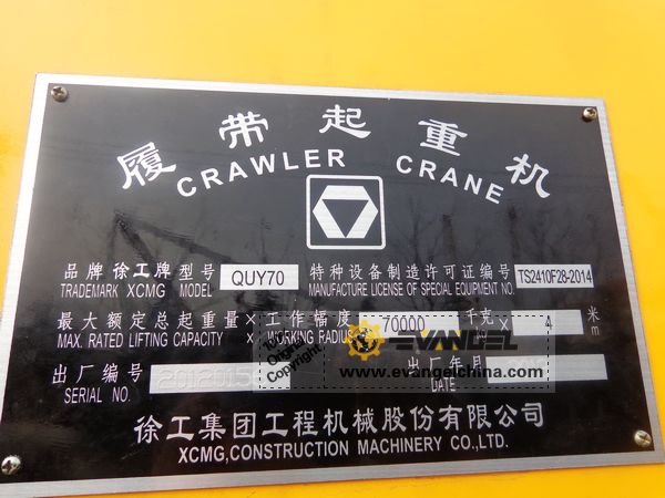 Brazil - 1 Unit XCMG Crawler Crane QUY70