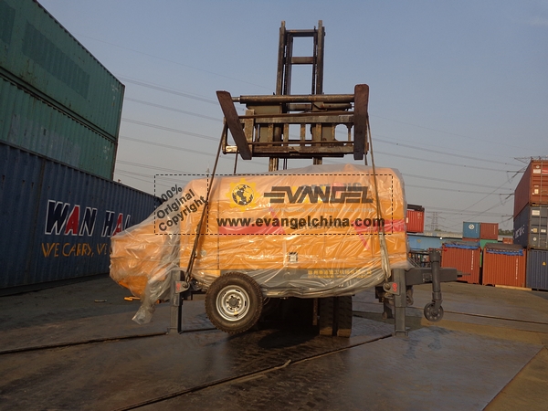 On Oct 17, 2015, Evangel dispatched 1 unit trailer concrete pump to Callao port, Peru. The model is: HBTS451270. The theoretical concrete output is 45m³/h. This is the Third time that this client bought from us. They have bought 4 units HOWO truck mixers and 2 concrete pumps with 25 meters pumping height in the end of 2014.