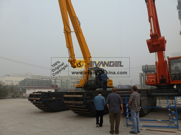 On Nov. 29, 2011, Clients from Australia checked our amphibious excavator in factory, they felt very satisfied with the good quality and performance, one of the customer operated the amphibious excavator and tested by himself with the help of our factory engineers. The factory also produces quality normal crawler excavators of various models, with different capacity.