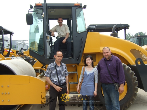 Next, we were drove to the road roller factory to check XS142 Road roller. They like it very much.