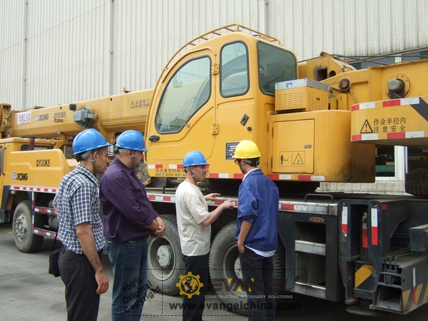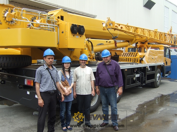 They showed great interest in Truck crane QY40K. The only regret is there is no QY40K in stock there, so we checked QY25K,QY50K, QY70K.