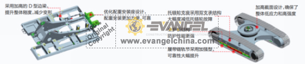 The movable arm and bucket bar are upgraded: the 20,000-hour working device technology is applied comprehensively to ensure the high reliability and longer life of the working device. The box structure of movable arm and bucket rod is enlarged and widened, with built-in multiple internal tendon plates and the application of high-strength materials, which ensures its high reliability through full data testing and harsh endurance experiments in actual mining conditions.
