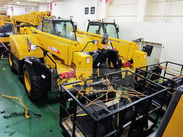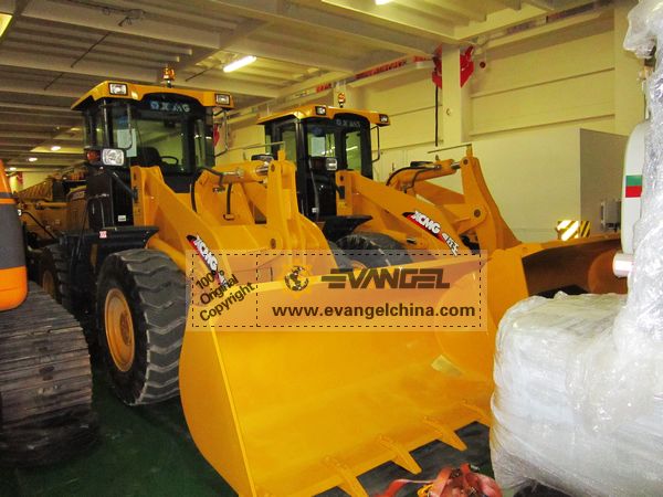 On Jun. 01, 2012, Evangel International shipped two units XCMG XT670-140 telescopic handlers and two units XCMG LW300F wheel loaders to Algeria, by RoRo ship.