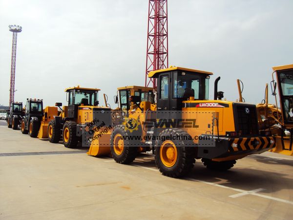 XT670-140 is a new designed model telescopic handler with rated load 3500kg, maximum lifting height 13.7m, maximum forward reach 9.4m, machine deadweight 10.5t. The telescopic handler adopts fork (standard), air conditioner (option), bucket and aerail working platform (option). There has two engines for option: Deutz and Perkins, this time the client choosed Perkins Engine for his two units XT670-140 telescopic handlers. LW300F is one of the most hot selling wheel loaders with rated load 3 ton.