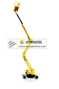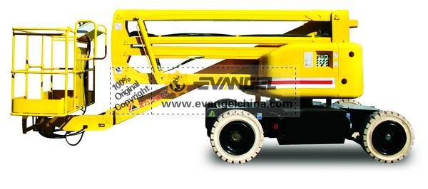 Working height is 16m. Basket could load227kgat most. Adopting battery-driven approach, environmental protection with no pollution, which offers the best choice for people operating in indoor environment.The basket can oscillate in the range of 160°, which is easy to approach the working target. The basket can be equipped with load cell as an option that could prevent from over-load , having high safety.The boom structure is adopted with arm breaker form as well as telescopic together. In fully telescopic condition, the volume is small. The capacity of overbearing barriers is much higher than before.Ana what’s more, the boom can stretch out flexible, no limiting of the area or room.The working area is much larger than before.Max. Turret Rotation could be ±355°, designed be no wagging tail. The protection cover is adopted to be tilting style or rotating style.Its appearance is simple and elegant. Its hydraulic system as well as electric system is convenient for us to maintain and fix. The AC Drives for the chassis is powerful, which is more efficient and reliable than DC Drives. It has a longer operating life, equipped a charger with the truck. Therefore, we could charge it at any time, which is convenient to use. Being equipped with steering configuration of front wheels and with dual drive for rear axle.The whole truck has a good safety capacity, adopting a new design, energy-saving and environment protected, which makes the whole truck has characters of no pollution, zero emission, low noise.Taking international developed CANBUS technique, complete intelligent proportional control by computer which has two controlling methods, one from the earth and the other from the basket. The whole truck has double motors, double hydraulic pumps, owning a function for emergency operation, which freeing customers from worries.